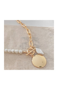 Collier - Laiton plaqué or & perles blanches