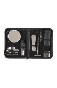 Ce coffret contient- Un peigne - Noir- Un rasoir - Homme- Trois lames de rasoirs - Homme- Une paire de ciseaux - Trois coupe ongles- Une brosse Ă barbe- Une pince Ă Ă©piler- Un miroir portatif- Une brosse Ă dents- Une brosse Ă vĂȘtementsOn aime- Sa praticitĂ© avec des produits essentiels au quotidien - Sa variĂ©tĂ© pour tous les besoins - Son sac de voyage pour emporter partout ses produits