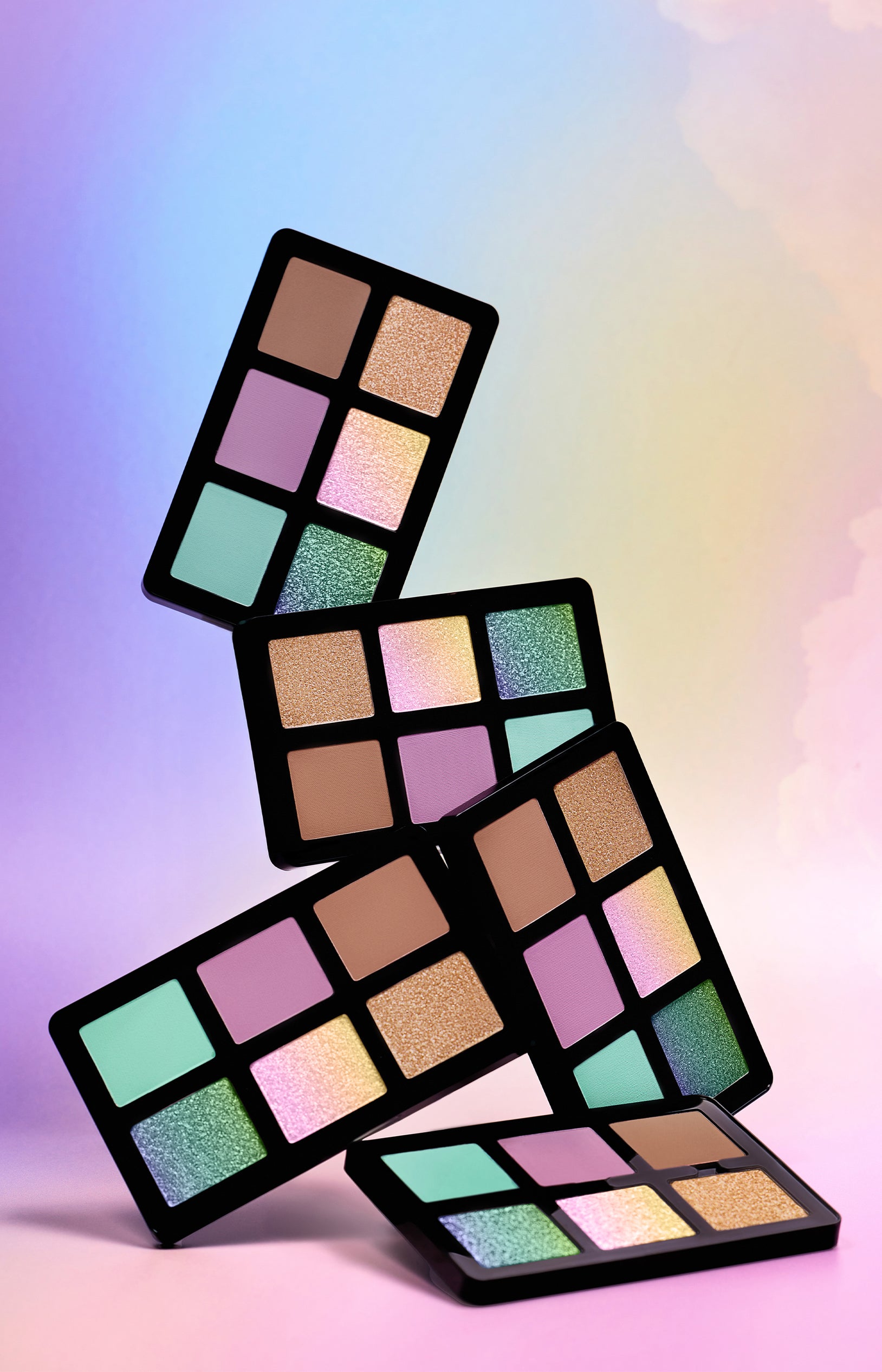 Adoptez cette palette pastel irrésistible pour des looks multidimensionnels ! Travaillez et mélangez les tons neutres pastel, les teintes arc-en-ciel et les tons métallisés chatoyants avec cette palette, parfaite pour l’ensemble du visage. L’indispensable tendance !
