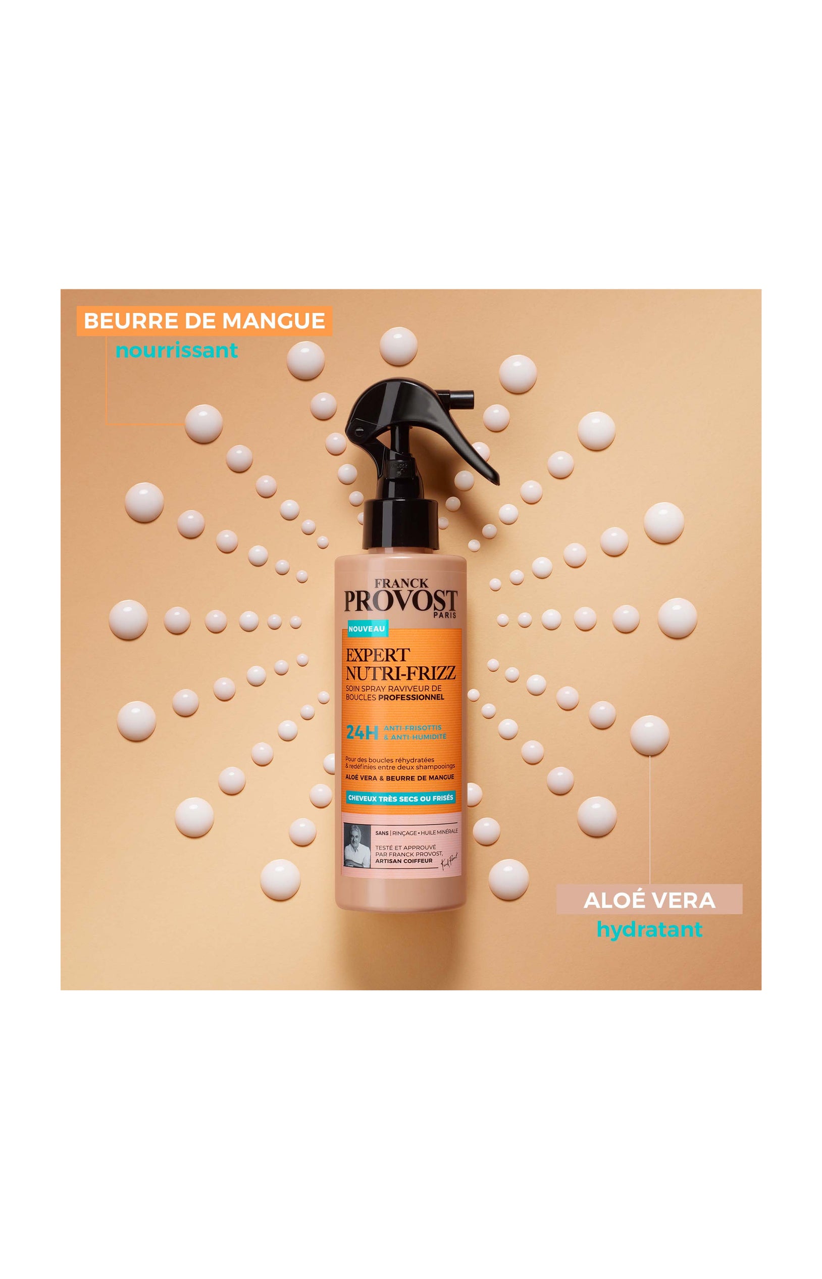 On aime – Son effet rafraîchissant entre deux shampooings – Sa formule hydratante à l’aloé vera et beurre de mangue – Son action anti-frisottis jusqu’à 24H