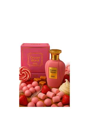 Dream Wardi est une fragrance intense et sophistiquée, conçue pour sublimer la féminité avec élégance. Dès l’ouverture, un bouquet floral fruité mêle la rose à la poire et au cassis. Le cœur fondant de praline et d’iris se prolonge dans un sillage voluptueux et sucré de patchouli et de vanille. Un parfum de caractère, à la tenue exceptionnelle grâce à sa concentration en extrait.Famille olfactive : Oriental floral gourmand