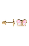 Boucles d'oreilles Papillon rose - Or jaune 375/1000 & émail - Enfant
