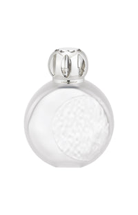 Un réel voyage lunaire avec cette lampe astral, dans la face lisse du verre se dessine un croissant de Lune tandis que sur son autre versant, un effet martelé irrégulier nous rappelle les cratères qui constellent sa surface. Sa couleur polaire, amène de la modernité à votre intérieur. Cette lampe s’accompagne du parfum pur cachemire blanc.