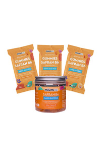 Cultivé depuis 3000 ans, le safran aussi appelé "l'or rouge" est reconnu pour ses multiples vertus médicinales. Ces gummies safran B6 hautement dosé en safran ont été conçus pour agir efficacement sur les troubles de l'humeur, les baisses de moral, le stress et l'anxiété.Contient : 4 x 42 gummies (1 pot + 3 recharges) pour 3 mois d’utilisation