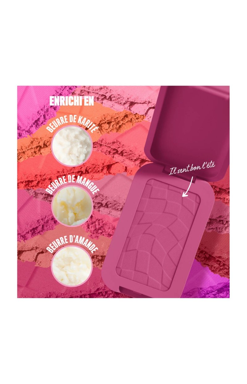 MICA • TALC • CI 77491 / IRON OXIDES • CI 15850 / RED 6 • SILICA • LAUROYL LYSINE • TRIMETHYLSILOXYPHENYL DIMETHICONE • ETHYLHEXYL PALMITATE • ZINC STEARATE • CI 77499 / IRON OXIDES • CI 15850 / RED 7 LAKE • OCTYLDODECANOL • MANGIFERA INDICA SEED BUTTER / MANGO SEED BUTTER • HELIANTHUS ANNUUS SEED OIL / SUNFLOWER SEED OIL • PRUNUS AMYGDALUS DULCIS OIL / SWEET ALMOND OIL • BUTYROSPERMUM PARKII BUTTER / SHEA BUTTER • AROMA / FLAVOR • CAPRYLYL GLYCOL • ISOSTEARYL ISOSTEARATE • OCTYLDODECYL STEAROYL STEARATE • TOCOPHEROL • PHENOXYETHANOL • LINALOOL • LIMONENE (F.I.L. N70043624/1).