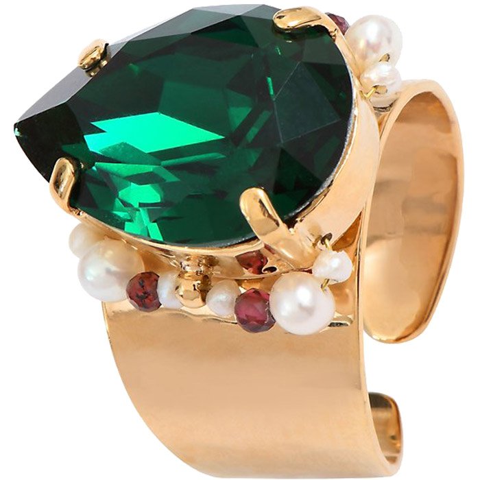 Bague Joyce - Métal doré à l’or jaune, perles & cristaux verts