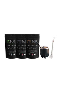 Découvrez le maté dans toute sa richesse avec le pack expert de Biomate. Ce kit complet réunit les accessoires essentiels et une sélection de matés bio pour une expérience de dégustation authentique et variée. Parfait pour les amateurs confirmés ou ceux souhaitant explorer pleinement l’univers du maté. Ce lot contient : - Une Calebasse Matero noire - Une Bombilla argentée - Un Maté Vert Bio - 150 g - Un Maté Mytille-Menthe Bio - 150 g - Un Maté Pêche-Abricotée Bio - 150 g