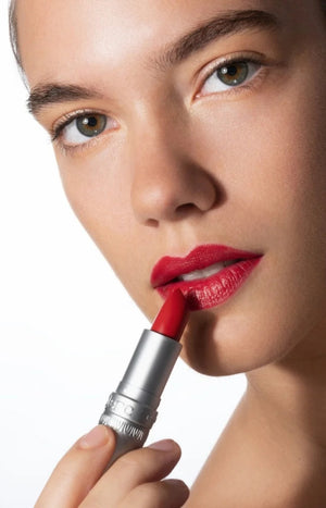 Appliquer sur l’ensemble de la lèvre supérieure en commençant par l’arc de cupidon. Continuer l’application sur la lèvre inférieure en commençant par les commissures et en étirant la formule vers le cœur des lèvres. Pour un résultat plus net, il est possible de définir en amont le contour des lèvres avec un crayon avant d’utiliser le rouge à lèvres.