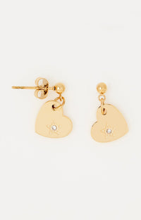 Boucles d’oreilles cœur - Acier inoxydable & cristal - Doré